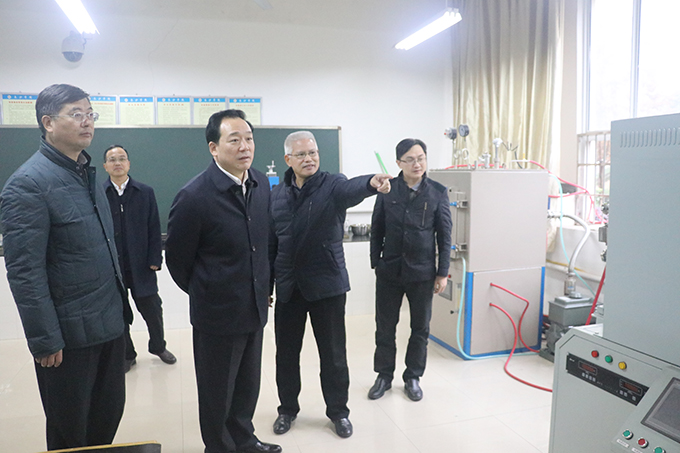 11月29日,副市长陈中、市政府副秘书长厉江华一行到拼搏app登录入口调研,实地考察了学校基建项目施工现场、艺术设计系成果展,机电工程系实验室等,并在一办公楼二会议室听取了学校党委书记韦成龙所作的工作汇报。