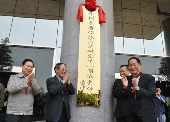 会议最后,胡德平、杨泰波、张硕辅、袁隆平为湖南科录普作物品质研究中心有限责任公司揭牌。