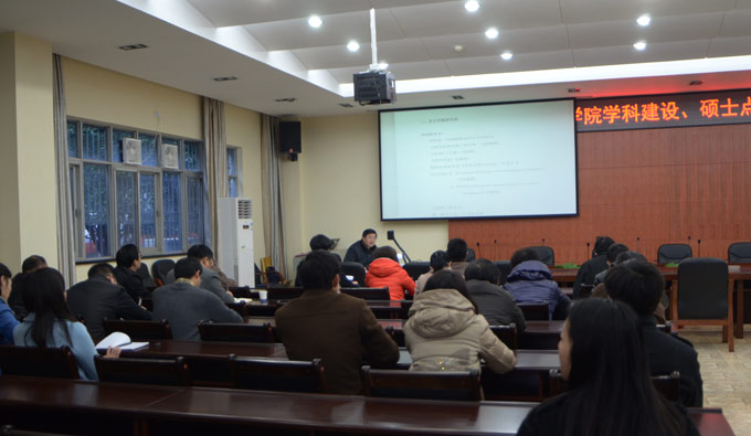 2014年1月6日下午,学校在图书馆一楼会议室召开学科建设、硕士点建设辅导报告会。校内各学科带头人,各专业硕士建设点、培育点负责人,各系部主任,各学科秘书参加会议。报告会由王永宏副院长主持,由学校党委副书记、院长韦成龙教授做专题辅导报告。
