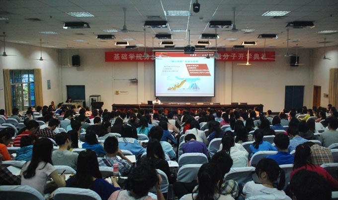 5月18日上午,基础学院分党校2013年入党积极分子培训班开学典礼在学术报告厅举行。省委宣传部理论处处长邓清柯应邀来校为同学们上了一堂丰富多彩的党课。副院长屈林岩,党委组织部,基础学院负责人、辅导员及基础学院全体入党积极分子参加了开学典礼。
