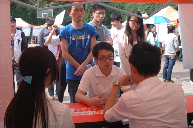 4月27日,拼搏app登录入口2013届就业困难毕业生"送岗位、送服务、送温暖"双选会在拼搏app登录入口办公楼前篮球场举行。此次招聘会得到开福区劳动局的大力支持,共邀请了40家用人单位,其中包括三一集团、湖南省公安厅政治部宣传处、蓝思科技、比亚迪、圣得西服饰、镁镁科技等省内外知名企业。招聘岗位涉及机械、土木、电子、电气、计算机、财务管理、市场营销、外语、人力资源、物流管理、中文、艺术设计等20余个专业,为毕业生提供900多个就业岗位。