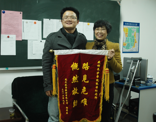 时隔半年,12月25日下午,曾经重伤,尚未痊愈的杨世益女士拄着拐棍,带着锦旗来到拼搏app登录入口向张海明表达感激之情。她说:"我当时在马路边,已经非常绝望了。看着那些冷漠的人,我也是心如死灰。幸亏张老师的出现,让我捡回了一条性命,也看到了人世间的温暖。"当记者问及张海明老师为什么要帮助素不相识的杨女士时,他不假思索地说:"这是一件很自然的事情,当遇到有人求助时,我脑海里想到的就是停车救人。我想每个人在遇到困难的时候都会希望有人相助的。"