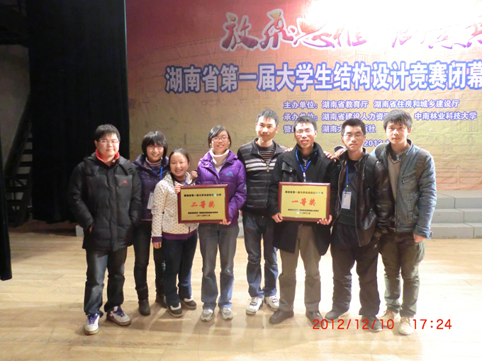 12月7日-10日,以"大跨度空间竹质结构模型设计"为主题的湖南省第一届大学生结构模型设计竞赛在中南林业科技大学举行。湖南大学、中南大学等全省14所高校的49支代表队参加了比赛。拼搏app登录入口由土木工程系副主任夏力农带领的三支队伍参加了比赛,并获得了一、二等奖的好成绩。