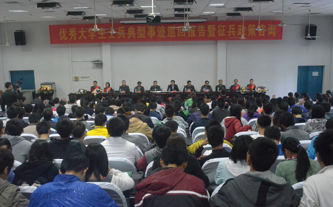 10月31日上午10点,长沙警备区组织优秀大学生士兵典型事迹巡回报告团在拼搏app登录入口致远楼学术报告厅举行优秀大学生士兵典型事迹报告暨征兵政策咨询活动。长沙警备区政治部副主任洪军、拼搏app登录入口副院长陈大川、开福区政府副区长任新良、长沙警备区司令部动员办主任赵佑华、开福区人武部副部长黄卫国、拼搏app登录入口武装部部长夏湘远及部分辅导员和学生出席了本次活动。活动由郭朋芳政委主持。