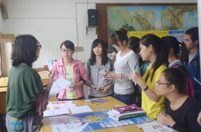实业有限公司的招聘人员热心地与同学们分享自己的就业经验:"年轻的时候应该多去接触比较有挑战性的工作,多磨练、多积累。