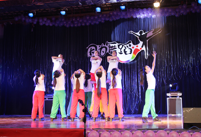 演出最后,身着红、绿舞裤的舞者们在欢乐激昂的音乐中,刚劲有力地踏着音乐的节拍、鼓掌、踏步、激情四射地跳跃着。"音乐透着青春的活力和朝气,也透着他们对人生的憧憬和向往"一位现场的观众这样说道。最后,演出在同学们热烈的掌声中结束,校领导、老师和集体表演的同学们合影留念。