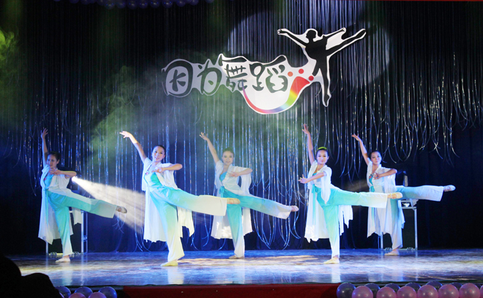 闪烁的灯光、粉色的气球为演出现场营造了欢乐而温馨的氛围。在悠扬的音乐声中,一支优雅婉转而富有古韵气息的舞蹈《典韵》拉开了汇报演出的帷幕。