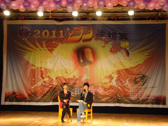 10月28日晚,由校党委宣传部主办,"长大之声"广播站承办的第四届"长大之声"校园DJ选拔赛决赛在教师学生活动中心成功举行。中文与新闻传播系播音与主持艺术专业教研室主任向梅林、主任播音员荣斌出席比赛并担任专业评委,此外,选手们还须接受由08、09级5位老主播组成的学生评委和来自各系的23位学生代表组成大众评审团的评审。