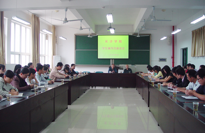 12日下午,学生辅导员座谈会在理工楼A303会议室举行。院长刘耘,原副院长宋达(现任长沙市市政府教育顾问),学生处负责人以及各系部和基础学院全体学生辅导员出席会议。会上,刘耘院长鼓励大家畅所欲言,来自13个院系的辅导员们就学生管理工作和辅导员队伍建设等方面提出了自己的建议和意见。在学生管理工作方面,大家就校园财产安全、食堂卫生、教室紧张、到课率等提出了自己的建议。在辅导员队伍建设方面,与会人员就辅导员队伍稳定、非在编人员待遇及工作职责职能等问题进行了深入探讨。