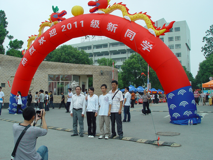 校门口、永康体育馆和致远楼,都有各系志愿者设下的新生接待点。他们分工明确,有条不紊,接替人员从不间断。志愿者们来来回回地奔走于同一条道路,他们的身影在校园内处处可见。他们为新生提行李,向新生和家长们介绍学校的基本情况,其中一名志愿者更是将笨重的行李从校门口一路搬到新生宿舍,累得满头大汗依旧毫不在乎。有的志愿者陪同新生找宿舍并购置日常用品。被接待的2011级新生陈坤表示非常感谢学姐学长的帮助,让摸不着头脑的她得到了极大的方便。