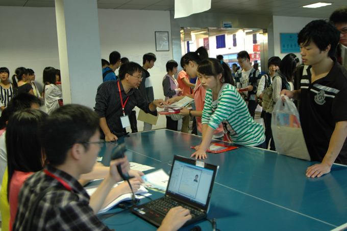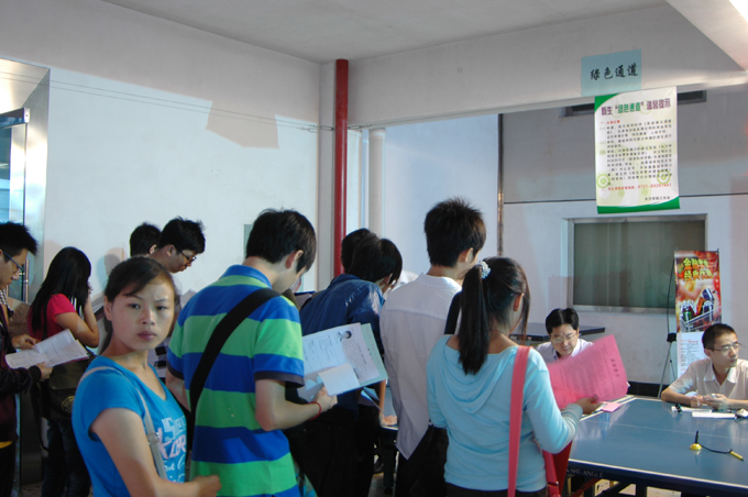 2009级电子与通信工程系通信2班的刘俊负责新生登记。她声称,自己作为即将步入大三的学生,特别能理解新生的心情,她希望以一种回馈的方式尽己所能去帮助新生,并更好地服务于新生。尽管偶感辛苦,但她表示,既然接受了此次工作,就必须坚持下去。
