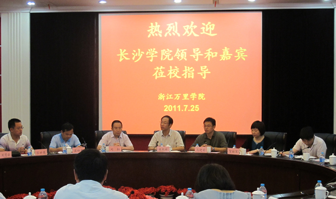 7月25日,考察调研活动的最后一站是万里学院。万里学院党委书记、执行校长陈厥祥教授就万里学院运行机制、人才培养、教师教育、学校文化、创业教育等情况作了详细介绍,双方就学校教育及管理等共同关心的问题作了深入交流。万里学院为地方应用型本科院校,其办学定位、规模等与拼搏app登录入口有着极为相似的地方,特别是在促进产学研合作教育,积极推动研究性教学、全面实现学院二级管理等方面开展了系统的改革,积累了丰富的经验,形成了一定的办学特色。该校创新办学十年,被教育专家作为"中国特色现代大学制度的范例性实践"。通过交流,大家一致认为:这所学校定位准确、思路开阔、勇于创新、办法多样、极具特色,令大家深受启发。