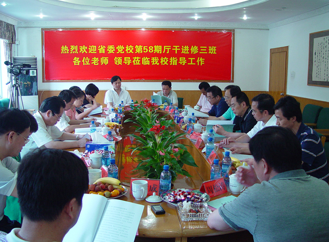 6月20日下午,省委党校学员部副主任黄世宏率省委党校第58期厅干进修三班一行15人来拼搏app登录入口视察指导工作。