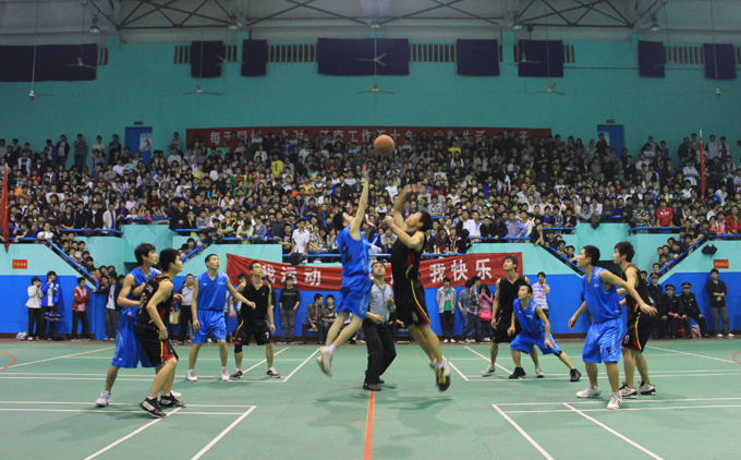 冠亚军争夺赛在机电工程系与土木工程系之间激烈展开。一开场,双方的实力就难分伯仲。快攻、进球、防守、反攻,球员们每次漂亮的转身、精彩的投篮都赢得全场的欢呼声。两队都凭着默契的配合与精准的投篮将比分紧紧咬住。一番角逐后,上半场土木工程系以35:24领先。在下半场的比赛中,场上观众情绪到达最高点,加油声如雷鸣一般,赛况也越发激烈。机电工程系一直努力追赶,离比赛结束还有6分钟时,机电工程系以一个远投3分,将比分追平,但在最后的几秒里,机电系防守出现漏洞,使得土木系球员压哨补篮进一球,时间凝固,全场沸腾,比分停留在55:54,土木工程系最终以一分的优势险胜对手,成为冠军,为此届篮球赛画上了完满的句号。