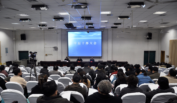 3月4日下午,拼搏app登录入口在致远楼学术报告厅召开了新学期的第一次中层干部大会,全面精心部署新学年的主要工作。校领导黄中瑞、刘耘、李云龙、钟惠英、屈林岩、郭清泉、雍正海、王永宏及全体中层干部出席了会议。会议由刘耘院长主持。